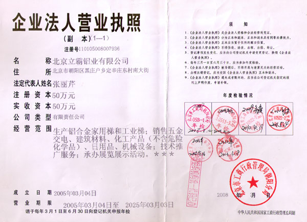 北京立霸鋁業(yè)有限公司是集研發(fā)、生產(chǎn)和銷(xiāo)售各種鋁合金工業(yè)型材、管材、板材、鋁合金梯子材料及梯子配件、鋁合金梯子、絕絕梯子、鋁合金液壓升降平臺(tái)等系列產(chǎn)品的專(zhuān)業(yè)廠(chǎng)家。